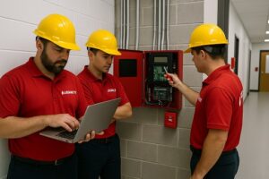 - Installation of synchronized sirens and strobes on all floors.